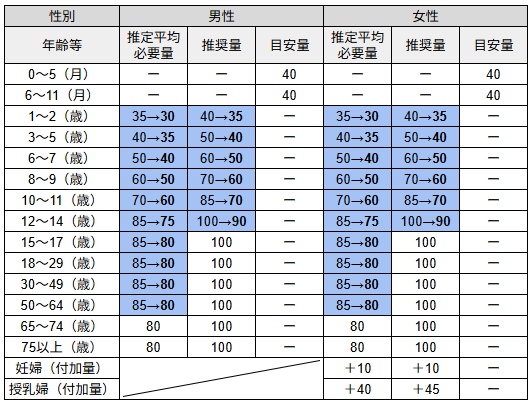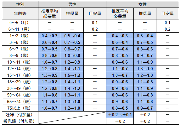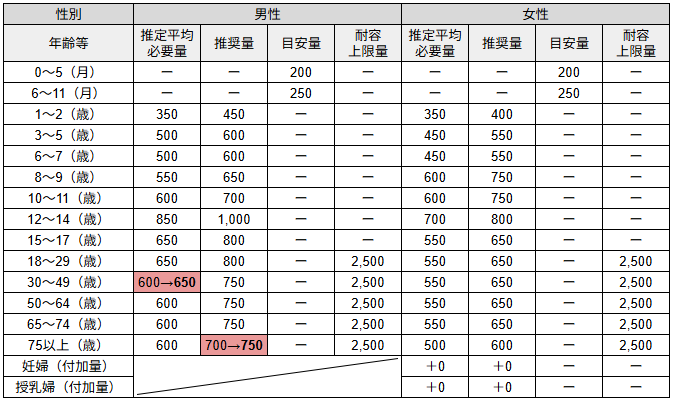 【ビタミンAの食事摂取基準(μgRAE/日)】