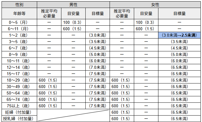 【ナトリウムの食事摂取基準(mg/日、( )は食塩相当量[g/日]】