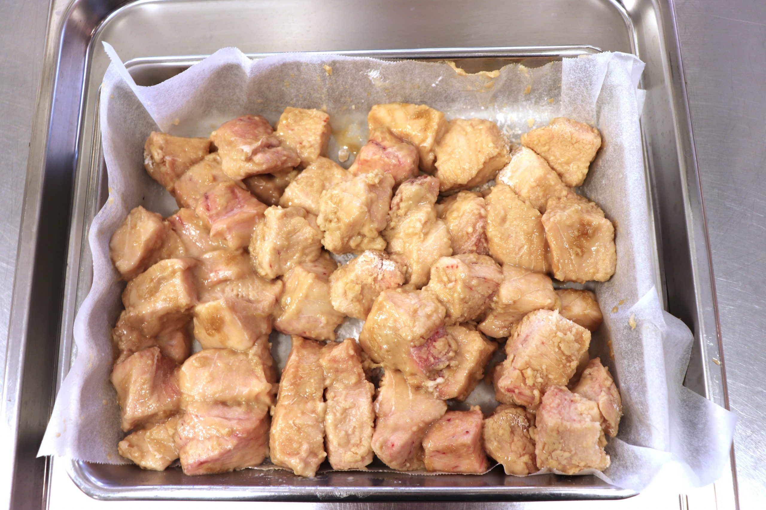 モウカザメは一口大に切り、Aを加えてよく混ぜ、10分ほど冷蔵庫で漬け置きする。